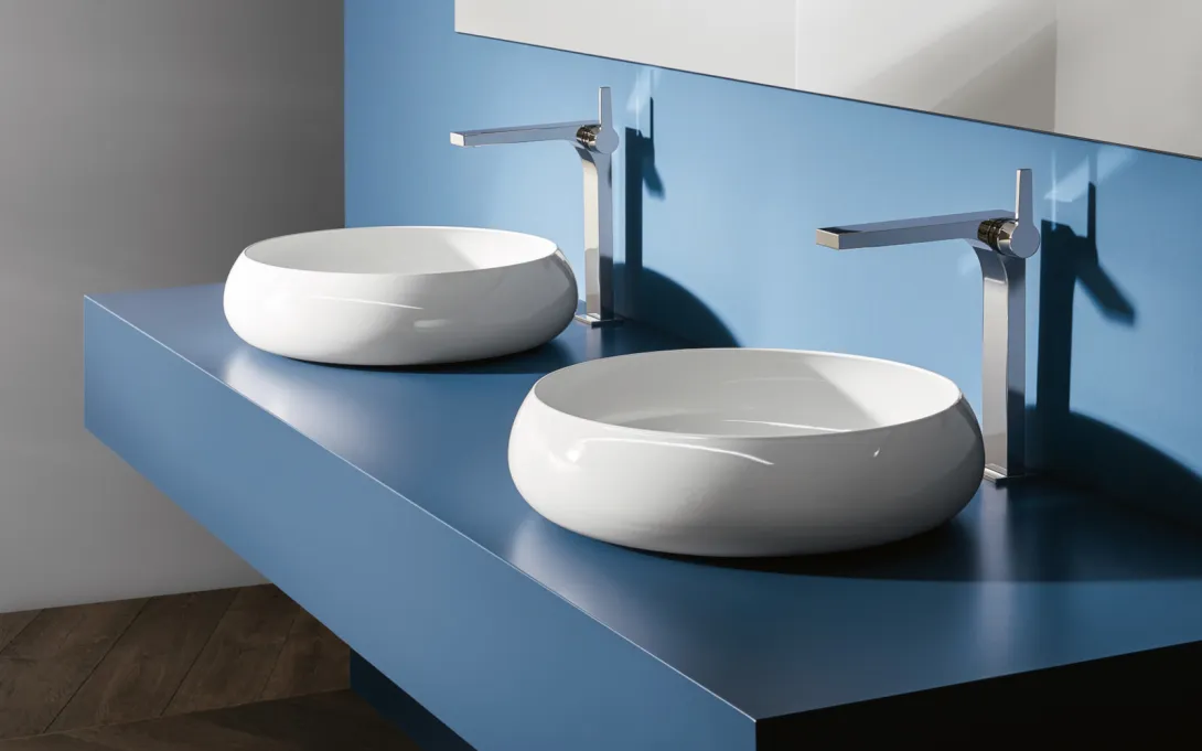 Runde Waschtische sind gekennzeichnet durch weiche Formen, zeitlose Eleganz und optimierte Raumausnutzung.