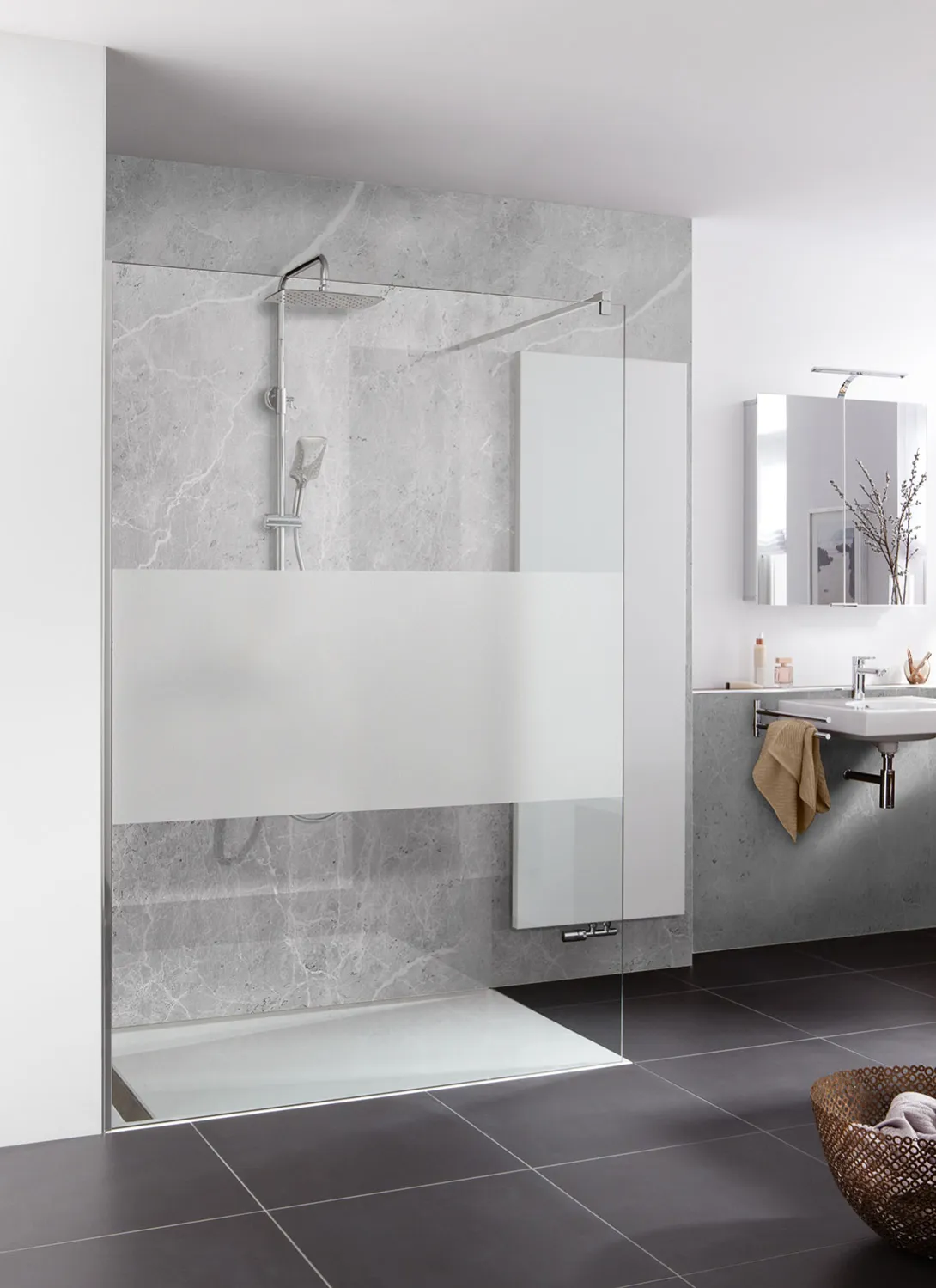 Mit Kienle Duschen erhalten Sie ein maßgefertigtes Meisterwerk. Jede Dusche wird individuell an Ihre Raumgegebenheiten und persönlichen Wünsche angepasst. Das hochwertige 8mm starke Einscheibensicherheitsglas (ESG) garantiert Langlebigkeit und Sicherheit. Für eine außergewöhnliche Brillanz sorgt die optionale Glasversiegelung TwinSeal.