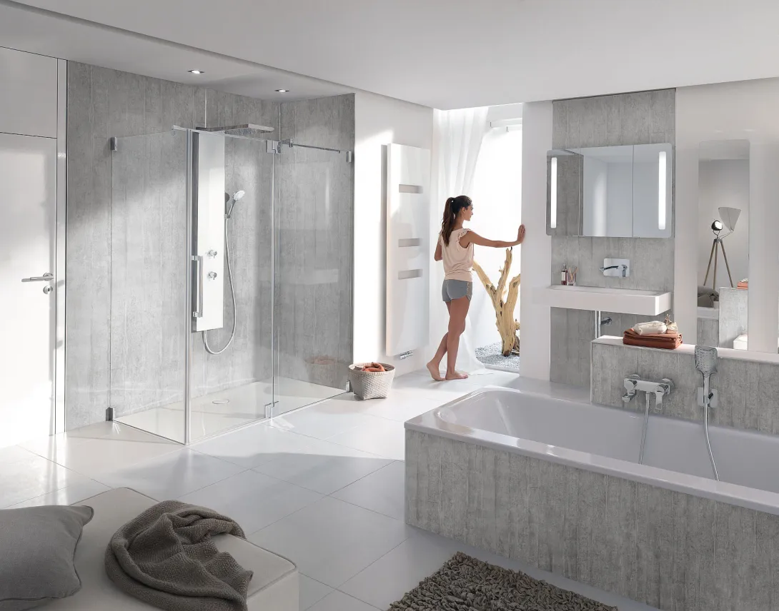 Entdecken Sie weitere Möglichkeiten, wie sich die Wandverkleidung einsetzen lässt – etwa als elegante Lösung im Dusch- und Waschtischbereich, als Sockelverkleidung oder zur stilvollen Einfassung Ihrer Badewanne. Lassen Sie sich inspirieren und gestalten Sie Ihr Bad ganz nach Ihren Vorstellungen.
