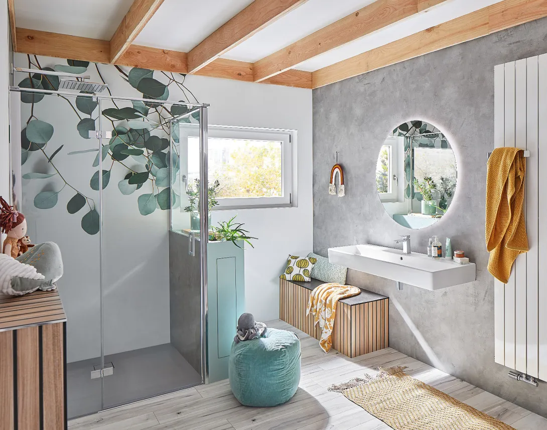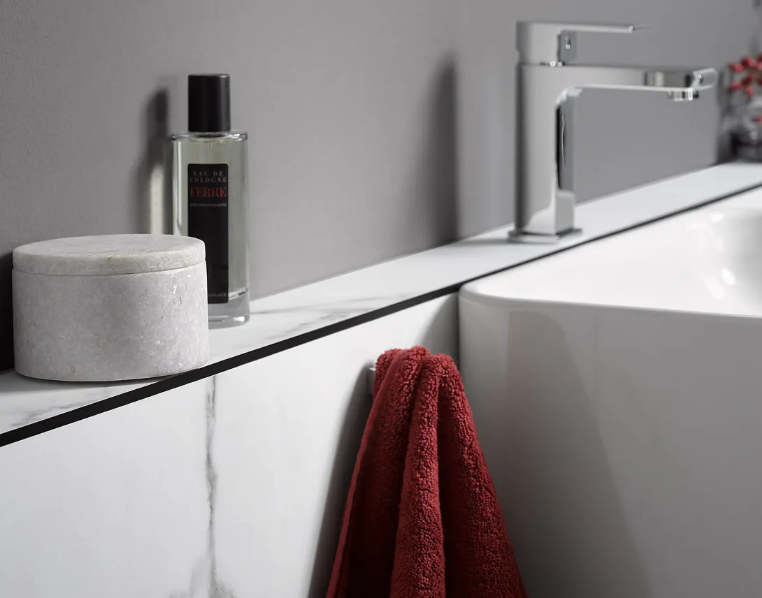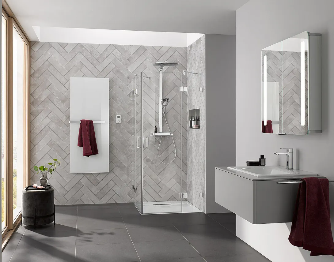 Die großformatigen RenoDeco Platten sind vielseitig einsetzbar und schaffen ein ruhiges, modernes Gesamtbild im Bad. Zugleich bieten sie praktischen Nutzen: Unvollständige oder unebene Wände lassen sich sauber abdecken, optisch aufwerten und zuverlässig vor Spritz- und Kondenswasser schützen.